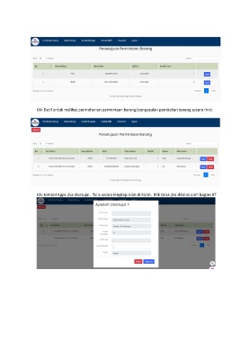Klik De l untuk melihat permohonan permintaan barang/pengusulan pembelian barang secara rinci. Klik tombol Appr Jika disetujui. Tulis secara lengkap isian di Form. Klik tolak jika ditolak oleh bagian RT