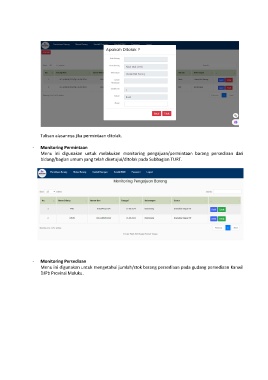Menu ini digunakan untuk melakukan monitoring pengajuan/permintaan barang persediaan dari